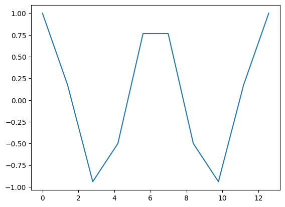 In [3]:x = np.linspace(0, 4 * np.pi, 10) y = np.cos(x) print(x, y) [ 0. 1.3962634 2.7925268 4.1887902 5.58505361 6.98131701 8.37758041 9.77384381 11.17010721 12.56637061] [ 1. 0.17364818 -0.93969262 -0.5 0.76604444 0.76604444 -0.5 -0.93969262 0.17364818 1. ]